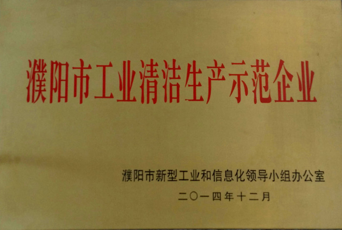 濮陽市工業(yè)清潔生產(chǎn)示范企業(yè)